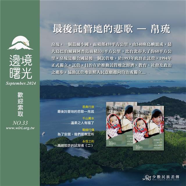 帛琉,一個蕞爾小國,面積僅459平方公里,由340座島嶼組成,最大島巴伯爾圖阿普島面積331平方公里,比台北市大了約60平方公里。帛琉是聯合國最後一個託管地,於1993年底終止託管,1994年正式獨立。託管,目的在於推動託管地之經濟、教育、社會及政治之進步,協助託管地依照人民意願趨向自治或獨立。然而,帛琉結束託管至今,業已30載,它的社經情況不僅沒有受惠於理論上在託管期間所應經歷的國際事務、公務或商業等等的訓練而自立好轉(託管期間的實際情況不得而知),甚則每況愈下,尤其在新冠疫情間,觀光產業受到嚴重打擊,加上政治立場的問題,目前觀光業仍處於冷淡期,毫無回溫跡象。
